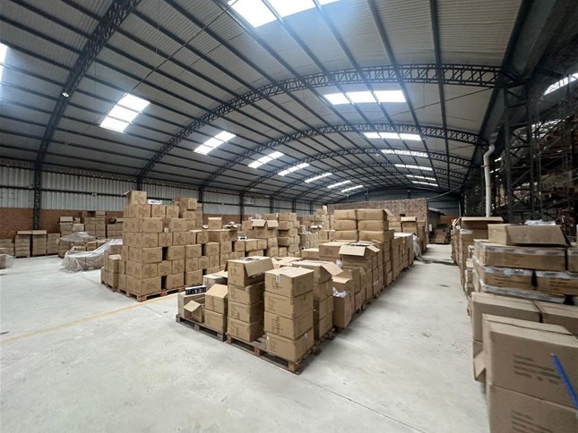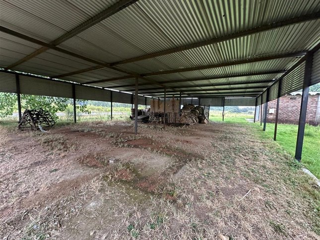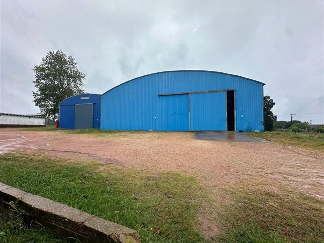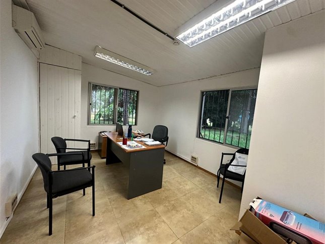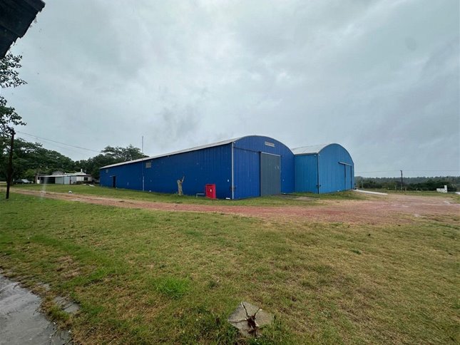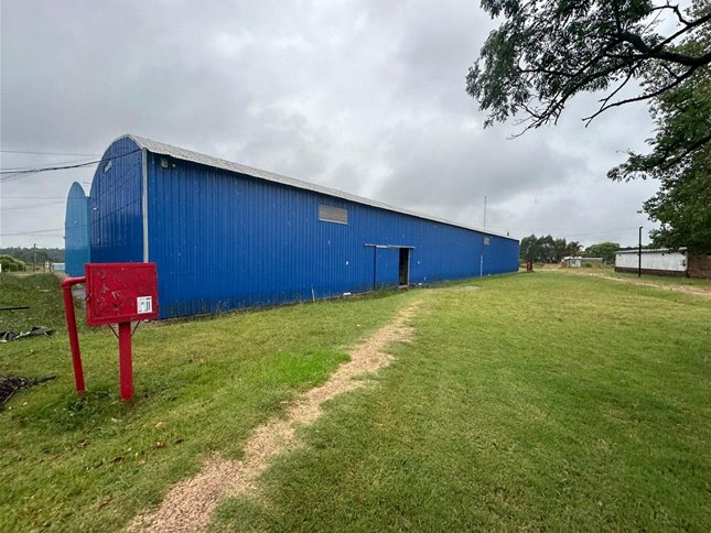 Predio de 3 hectareas con construcciones varias. Oficinas, sala de reuniones, barbacoa y servicios completos. Dos naves principales de 2500m2 + depositos anexos.