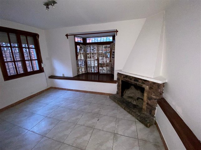 Jardín al frente con reja perimetral y cochera, living con hogar, estar comedor, cocina definida, 3 dormitorios y dos baños completos.