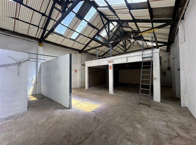 Oficinas en dos plantas, servicios completos y área de depósito con acceso de vehículos.